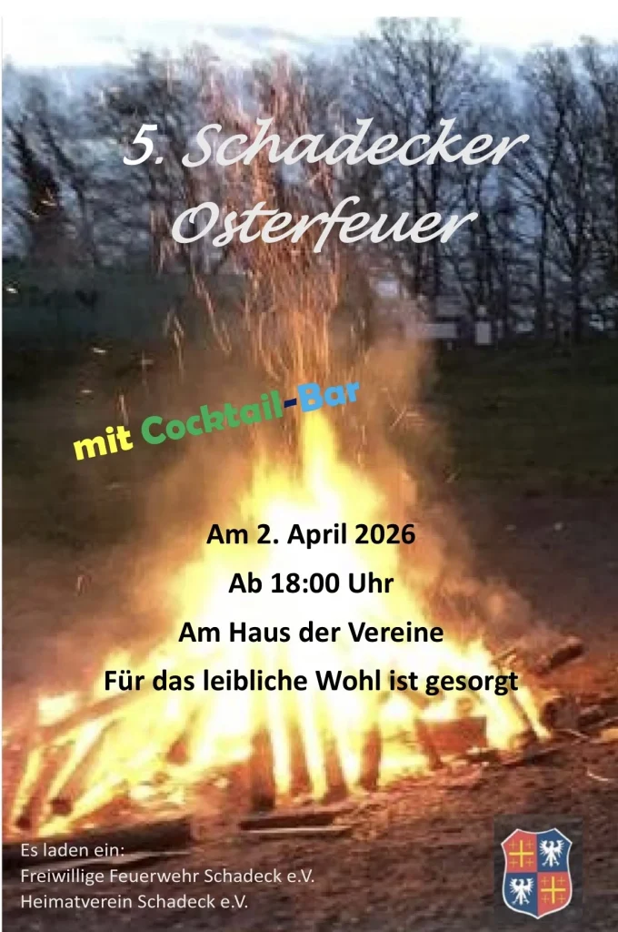 Wir laden zum 5. Schadecker Osterfeuer ein.